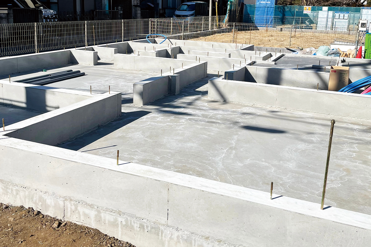 建物の基礎となる部分の工事になります。コンクリート造りの建物には欠かせない工事です。